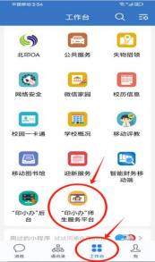 第二步——点击下方的“工作台”选项 ,点击“印小办”师生服务平台: