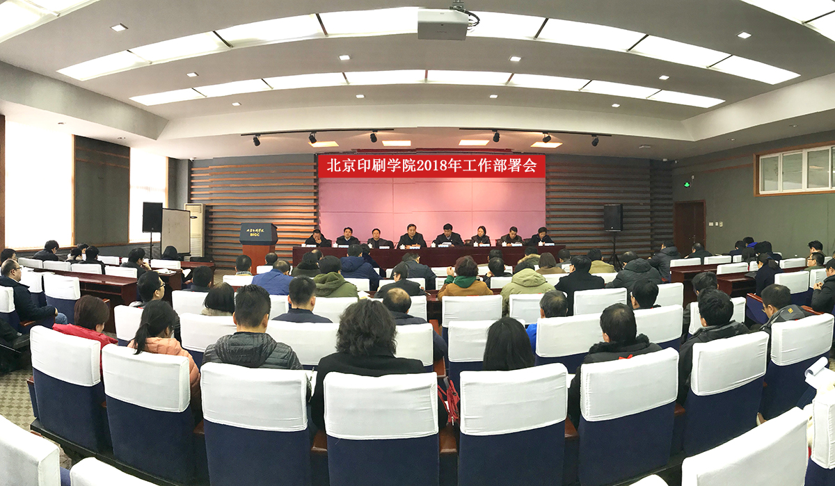 新学期新气象,新时代新作为。3月7日下午,北京印刷学院2018年度工作部署会在学校教A楼报告厅召开。党委书记高锦宏、校长罗学科分别作工作报告,回顾总结2017年学校工作,研究部署2018年学校工作,并就做好2018年工作提出要求。党委副书记赵盛伟通报了北京印刷学院领导班子2017年度民主生活会情况。全体校领导和全体中层干部参会,高锦宏主持会议。